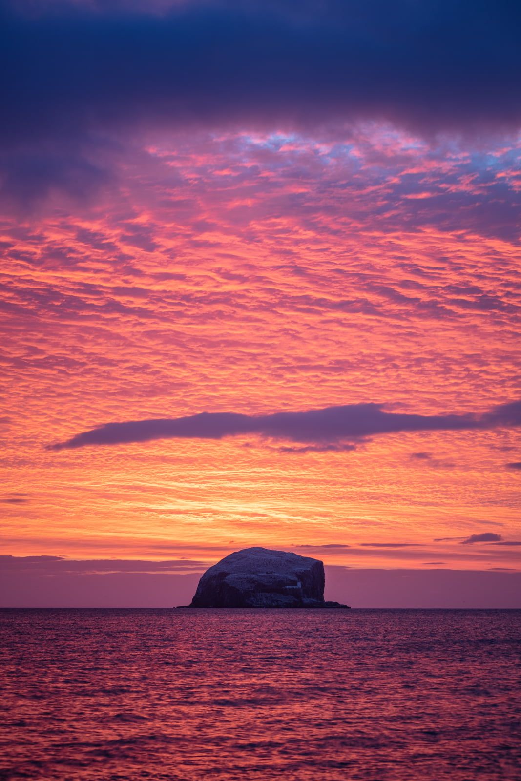 A spectacular start to the day watching the sky go on fire over Bass Rock. Seeing a thin red band of colour near the horizon, and the type of clouds overhead, I knew it was going to be memorable.