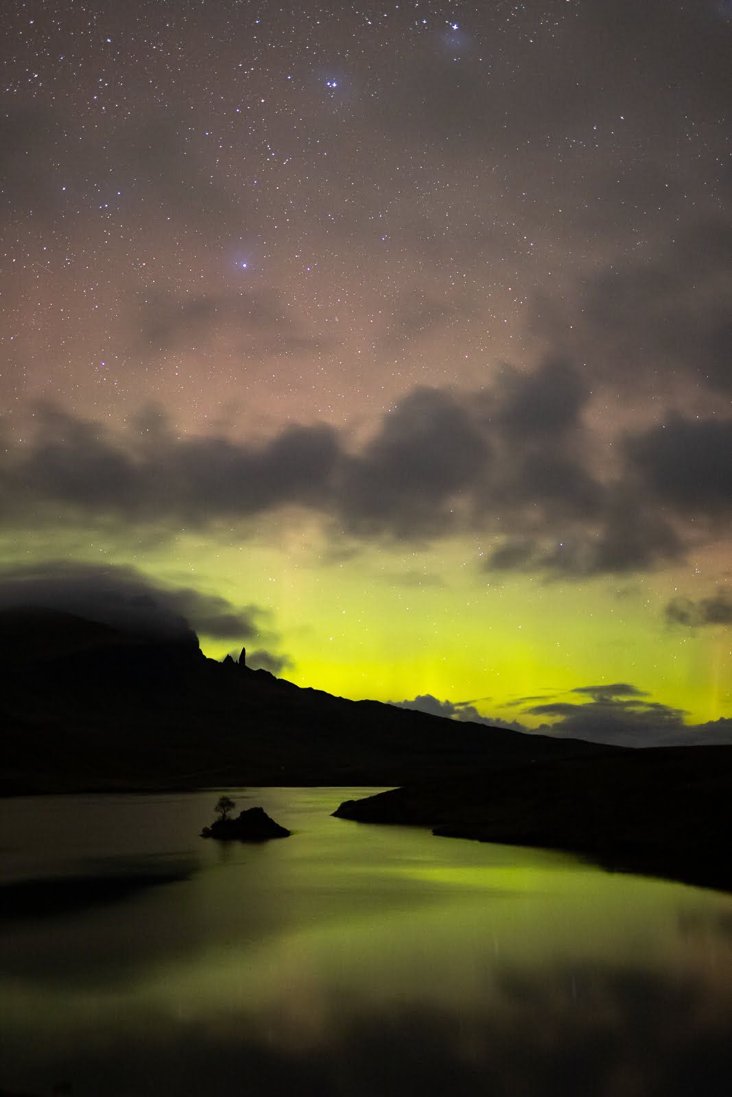 A memorable night watching the Northern Lights dance above the iconic Old Man of Storr, on the stunning Isle of Skye.